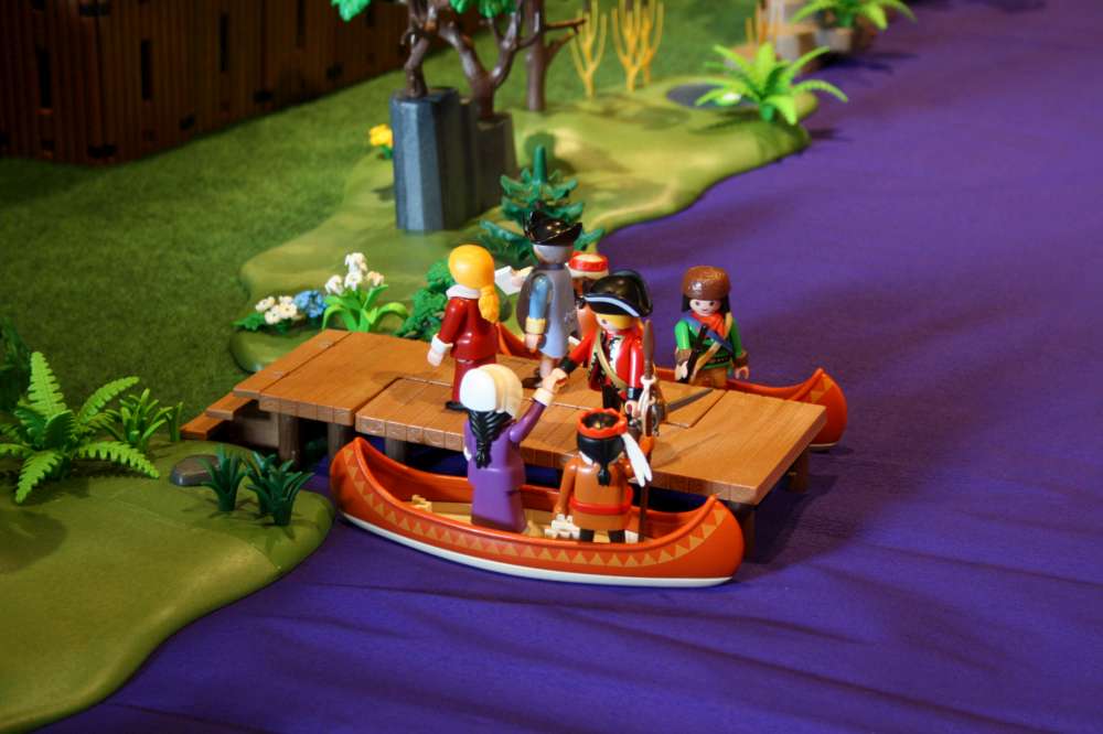 Mit Hunderten von Bateaux und Kanus hat ein Großteil der französischen Streitmacht, ihre indianischen Verbündeten
