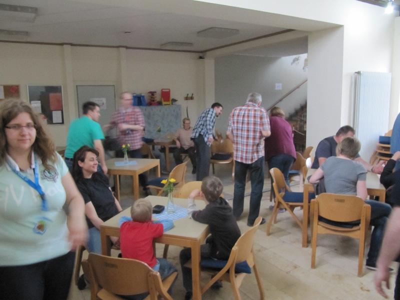 Verwackelt, da alle in Eile (schnell zum Buffet oder zum Aufbau)