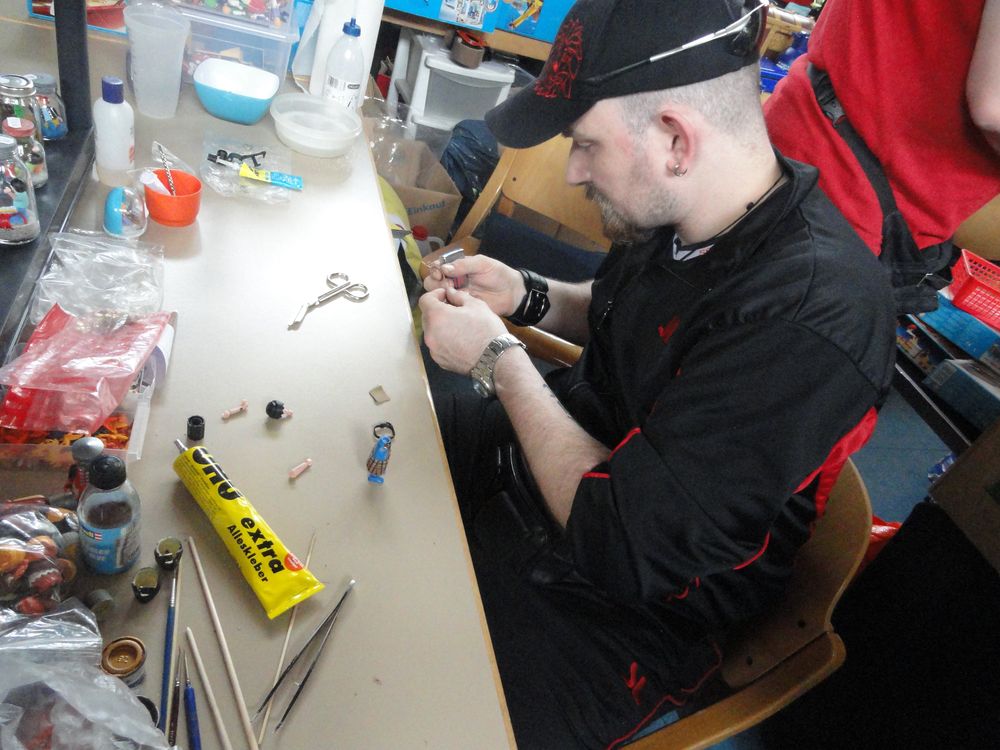 Erste Gäste trudeln ein - noch können die Dioramenbauer miteinander ratschen