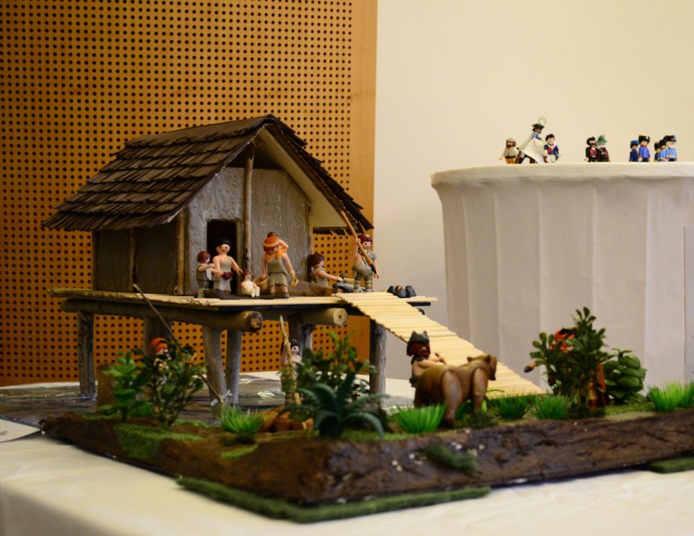 Erwinius' kleines Pfahlbau-Dio hat übrigens so gut gefallen, dass es jetzt seinen Platz im Tourismusbüro in Mondsee gefunden hat! :great