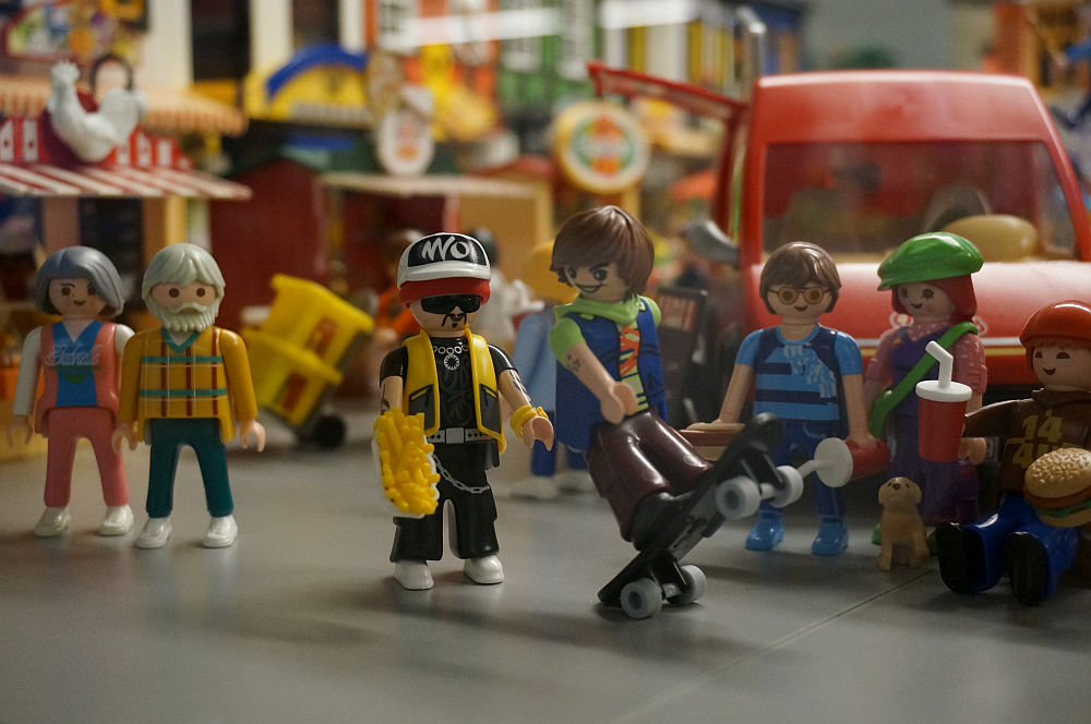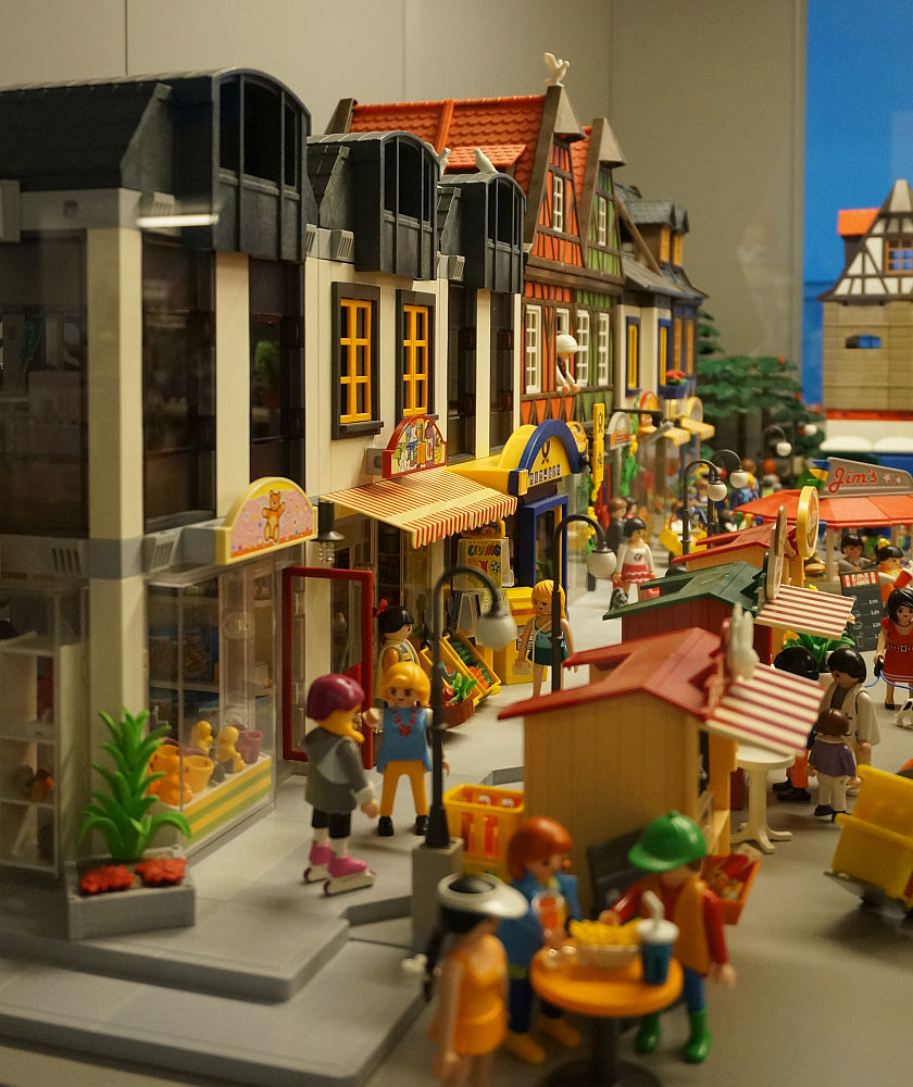 ich weiss jetzt gar nicht, was mir besser gefällt: Die Häuserzeile der Stadt mit Cafe und Pizzaria oder die Kirmes!