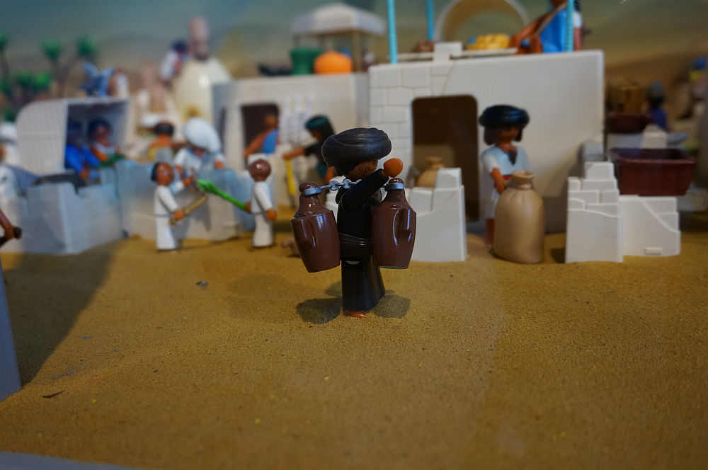 auf Bild 5 ist ein Wasserträger zu sehen. Die Krüge sehen aus wie die Unterteile der ägyptischen Kanopen. Aber hat jemand eine Idee, was das für Deckel sind? Oder hat Brubil da etwas gebastelt?