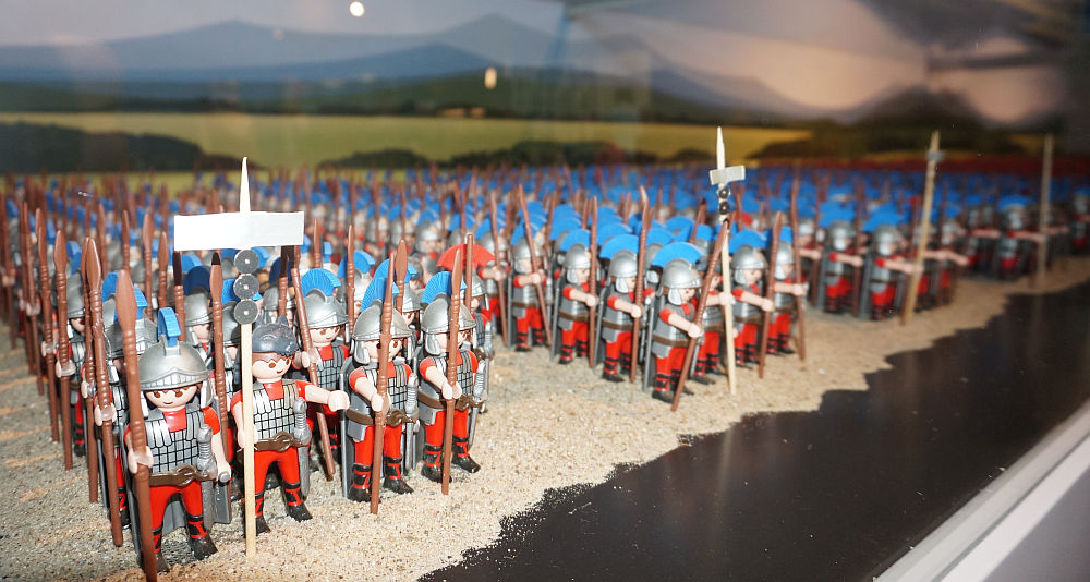 Damals bei der Sendung mit der Maus fand ich es noch einigermaßen cool, weil es halt das erste Mal war, dass etwas mit Playmo - Römern im großen Stil gemacht wurde.