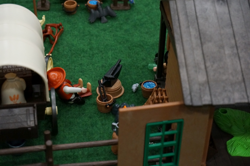 hab zwar bisher keine Folge der Serie gesehen, aber rein als Westerndiorama betrachtet finde ich es großartig. Schöne nette kleine Szenen, z.b. die Vögel, die sich die Würstchen klauen....
