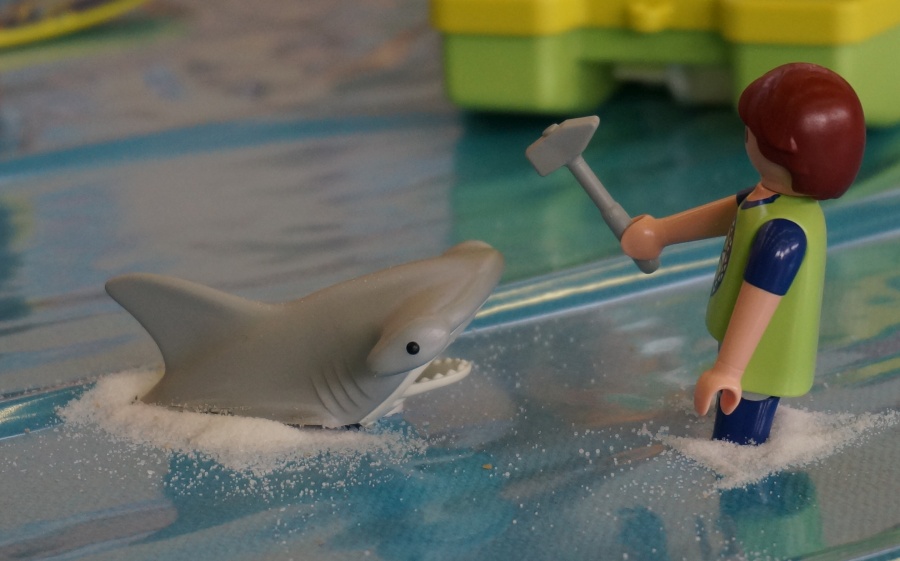 Die Strandszenen sind super. Ob der Hammer-Hai sich von Hammer-Kai beeindrucken lässt????