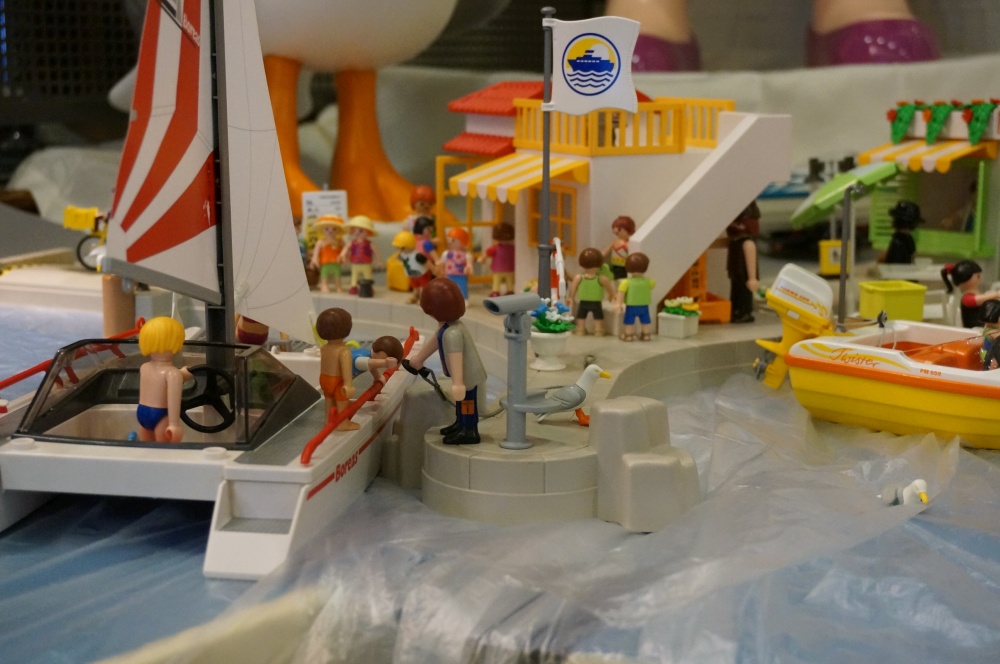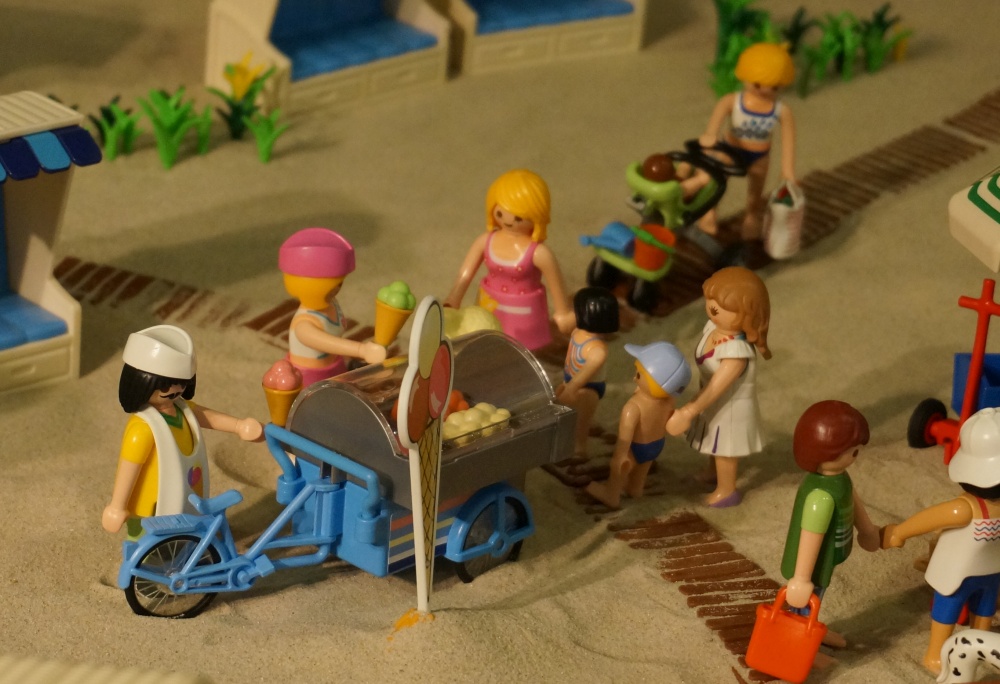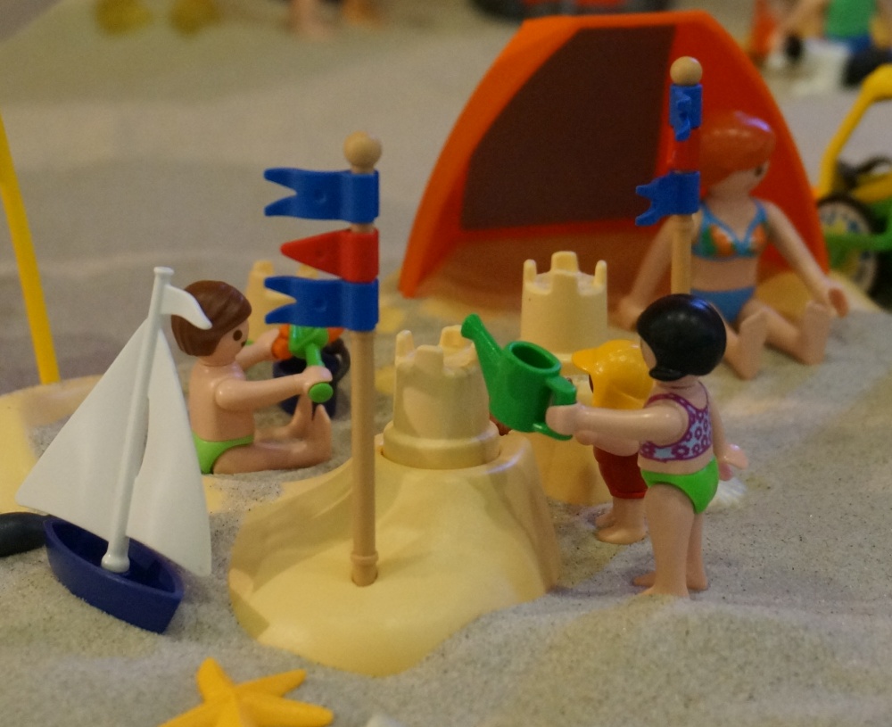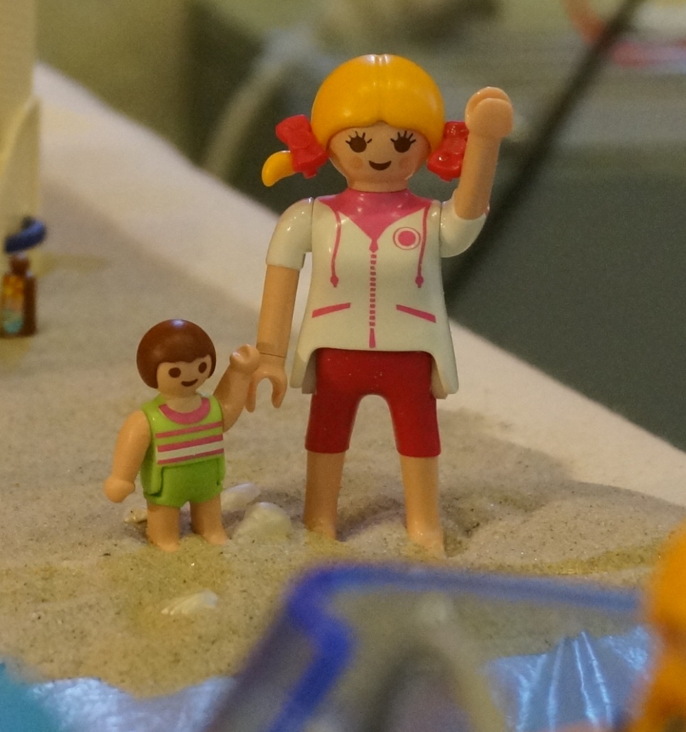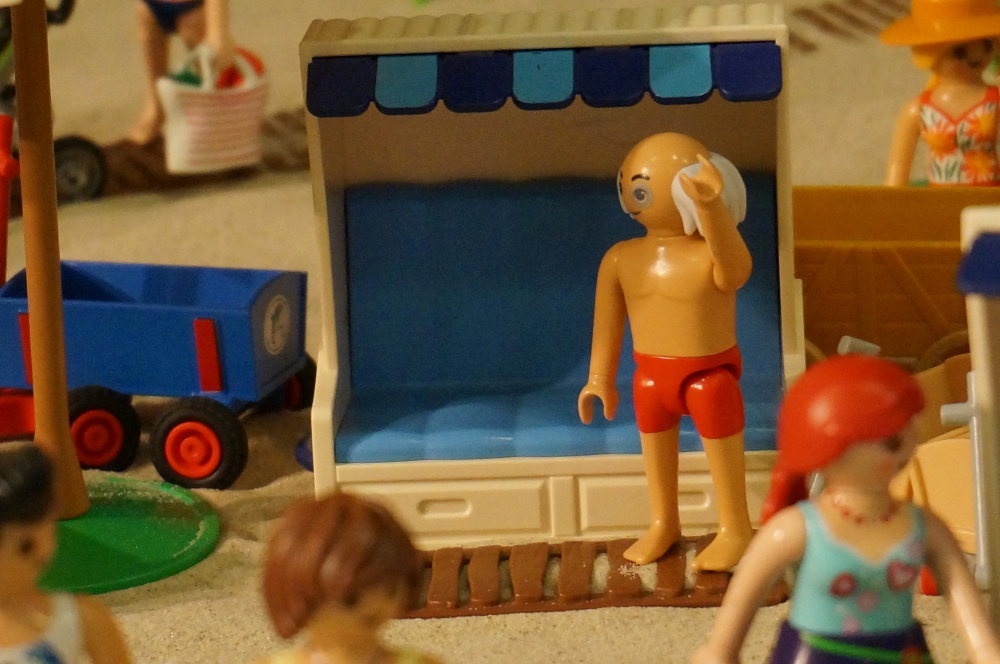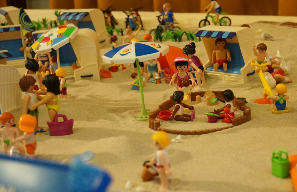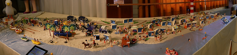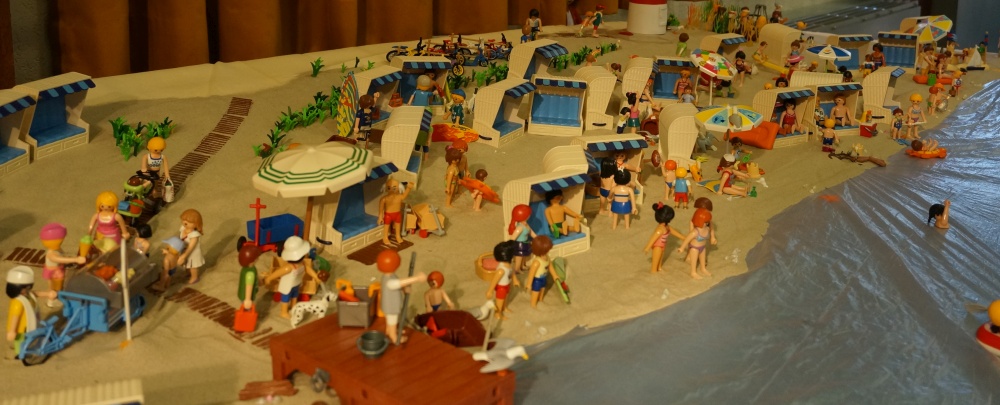 Der Strand mit den Badenden ist sehr schön gestaltet, sogar mit umgesteckten Badefiguren, sehr schön.