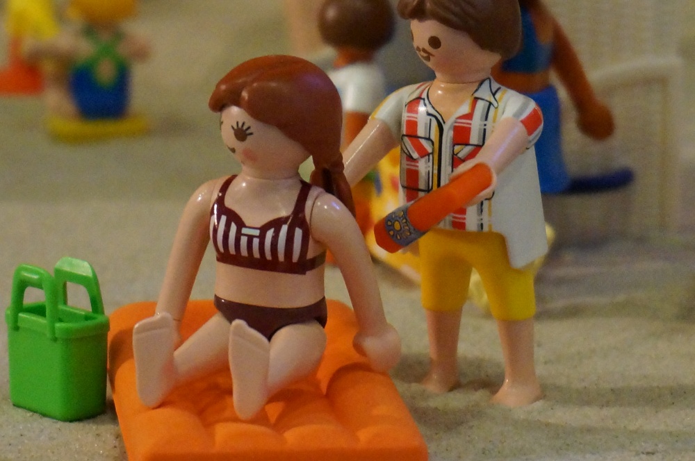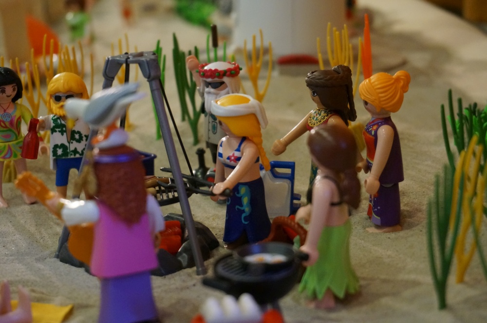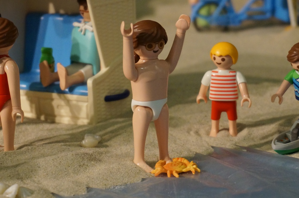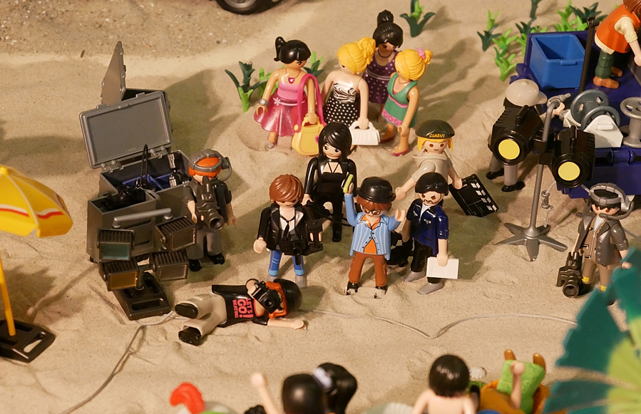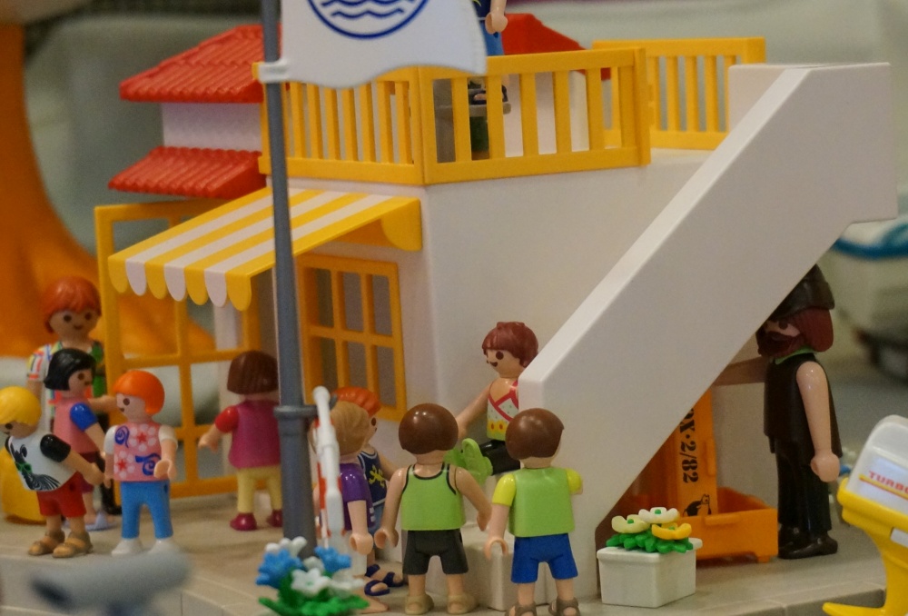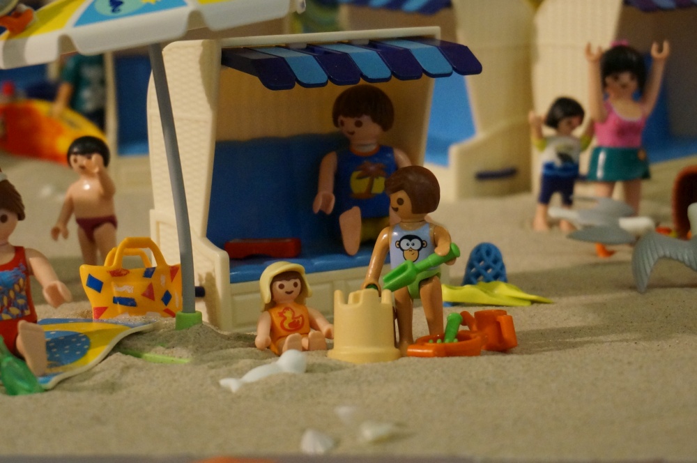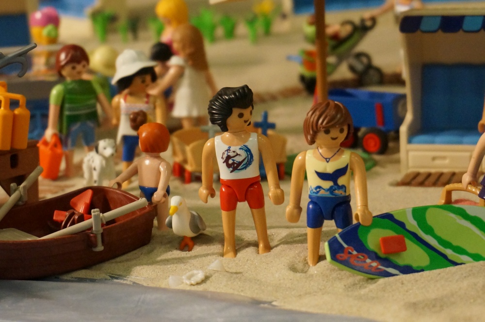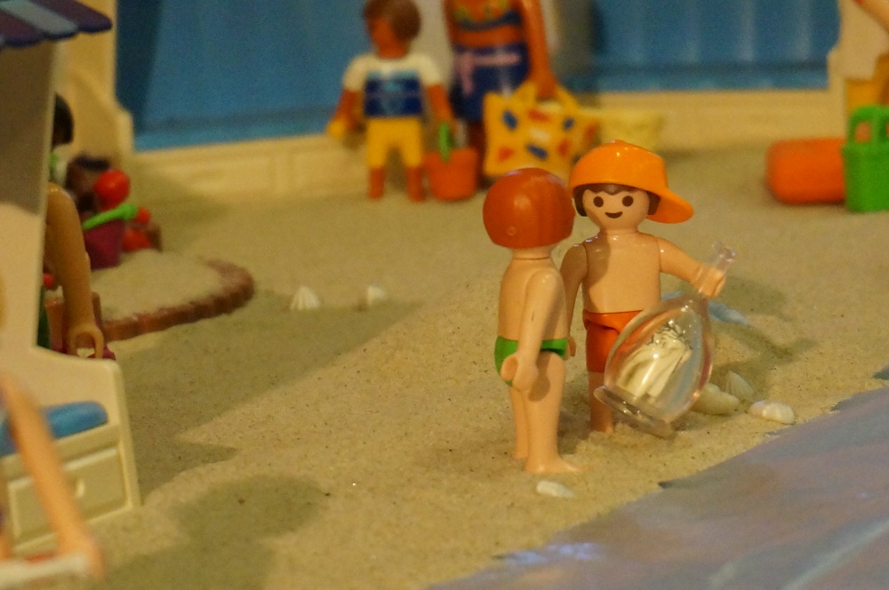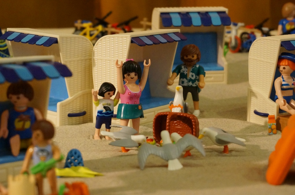 Der Strand mit den Badenden ist sehr schön gestaltet, sogar mit umgesteckten Badefiguren, sehr schön.