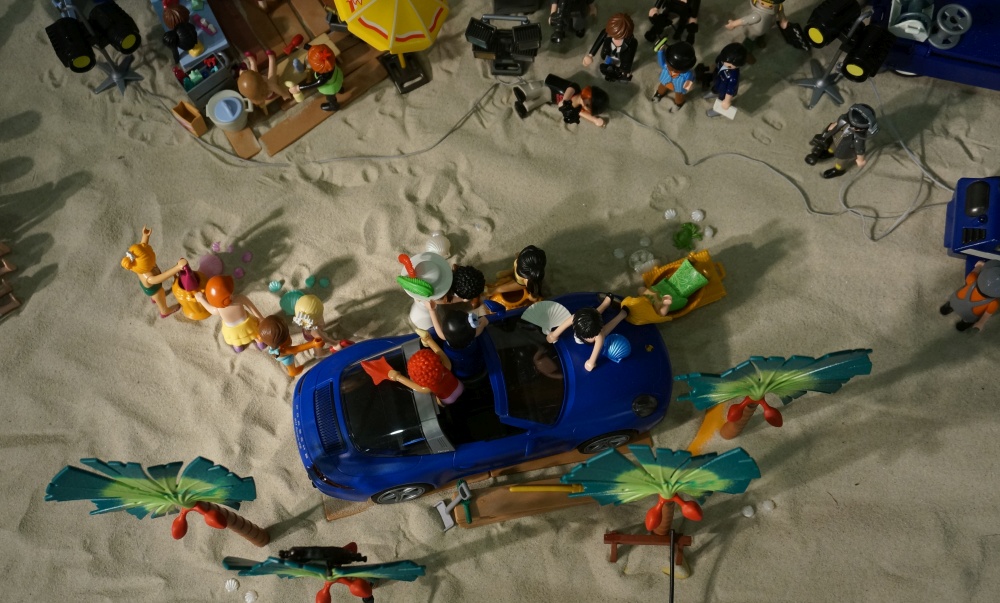 Ich nehme an, die Palmen wurden vom vollen Körpereinsatz zeigenden Fotografen und seinem Team extra als Kulisse fürs Shooting angekarrt.