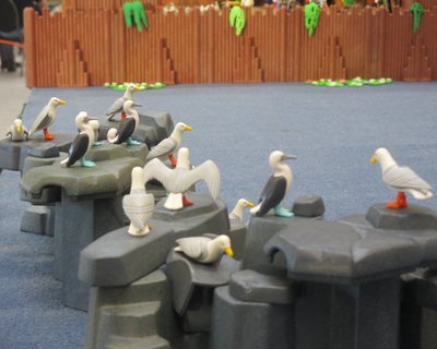 Lustige Anmerkung ... selbst die Vögel schauen alle andächtig zum brennenden Schiff