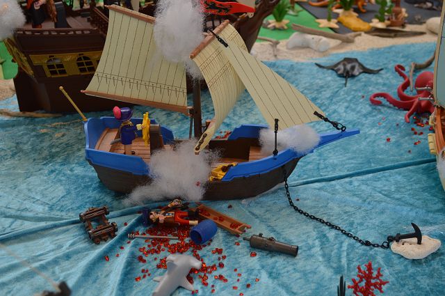 Das Dio hatte unglaublich viel Potenzial, dazu gab es auch eine kleine Geschichte (auf einem der ersten Fotos sieht man den Aufsteller) als Unterbau. Auch für Sound war gesorgt, es lief die Titelmelodie von "Fluch der Karibik" in der Techno-Version. Ich fand's klasse![]()