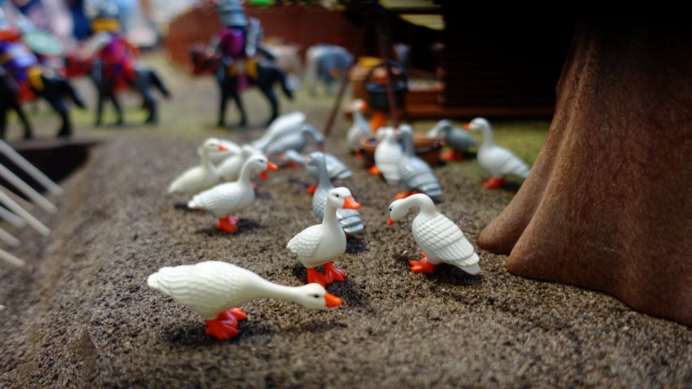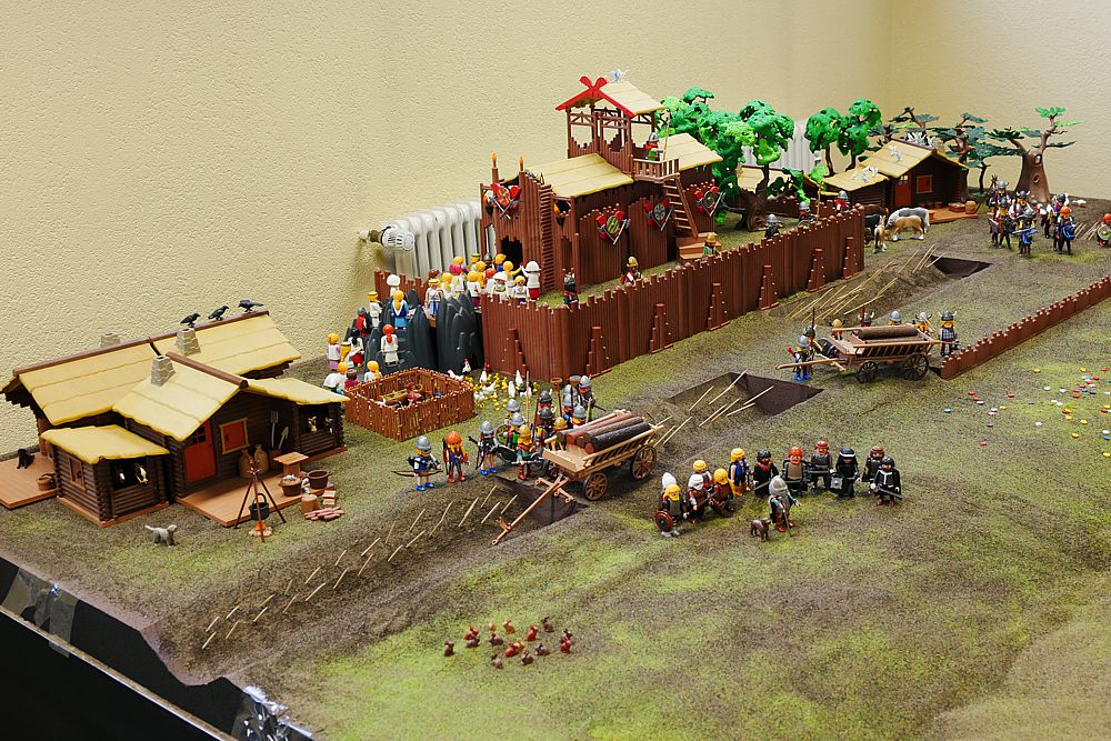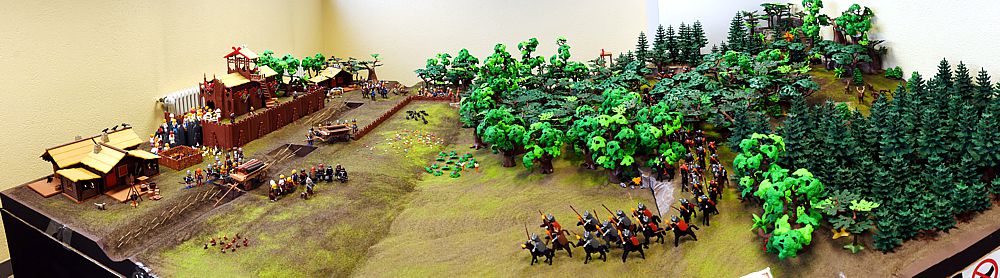 Wunderschöne Umsetzung, die Landschaft erste Sahne (weiß seit der Allgäubörse ja auch, dass der Streu-Belag wie bei einem Hefeteig aus einer immer wieder verwendeten "Ursuppe" besteht^^), tolle Festung, schöne Figuren. Mit einem sehr feinen Gespür für Maß und Ziel arrangiert, mit dem Mut zur Lücke, den ich persönlich bei Dios sehr schätze - damit meine ich, dass nicht jeder Quadratzentimeter eines Dios mit Playmo zugebaut sein muss. Ganz, ganz toll