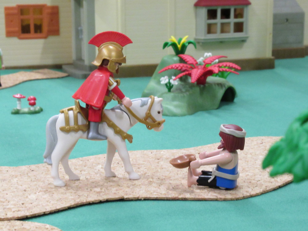 Sankt Martin, der gerade mit dem Bettler spricht.