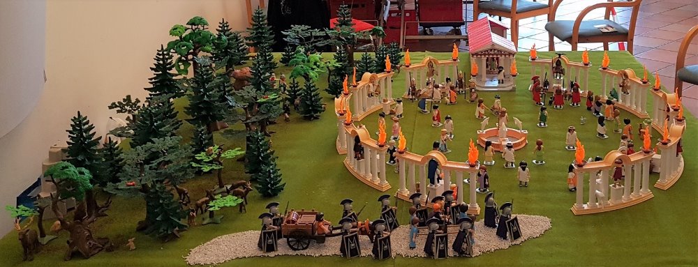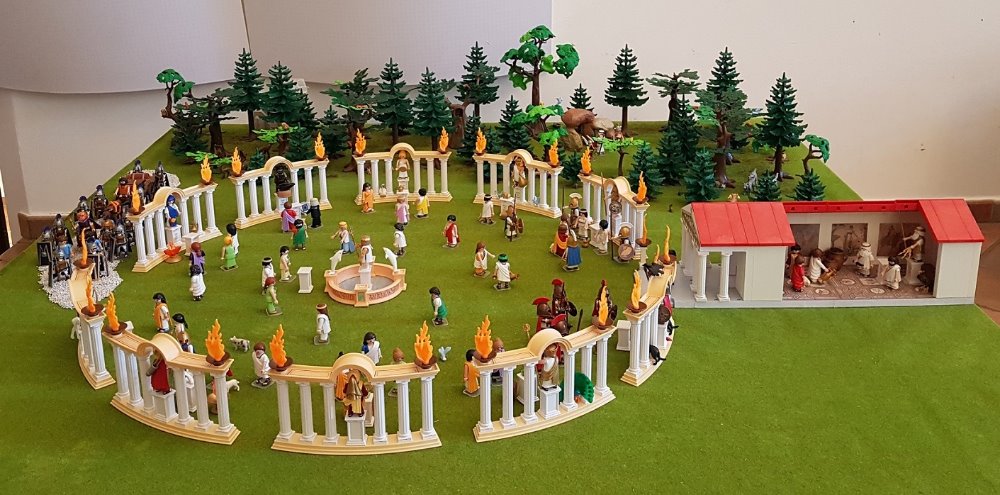 Das vorderste Wildschwein ist übrigens kein Playmobil, sondern ein Abguss eines römischen Talismans.