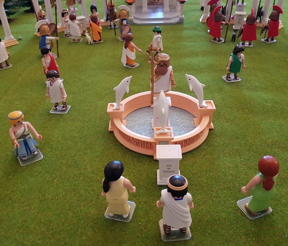 Der Poseidonbrunnen steht im Zentrum der anderen Kultstätten.