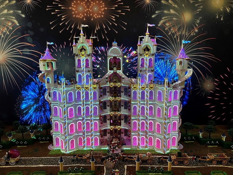 Nach einer Idee von Oliver Schaffer choreografiert Daniel Arellano Mesina aus Andorra magische Lichtprojektionen auf vier PLAYMOBIL-Landschaften. Durch das sog. Projektionsmapping erwachen Prinzessinenschloss, nostalgische Puppenhäuser und Drachenburg zum Leben. Die Oberflächenstruktur der Gebäude funkelt kunterbunt, dreht sich im Takt der Musik und scheint märchenhaft lebendig. Staunen garantiert! Der gebürtige Chilene Daniel Arellano Mesina studierte in Barcelona Film-Postproduktion und hat sich unter dem Künstlernamen Dandream Films spezialisiert auf die Erstellung von Video Mapping Animation. Zuletzt war er Teil des Produktionsteams im Andorra Pavillon der Weltausstellung in Dubai.