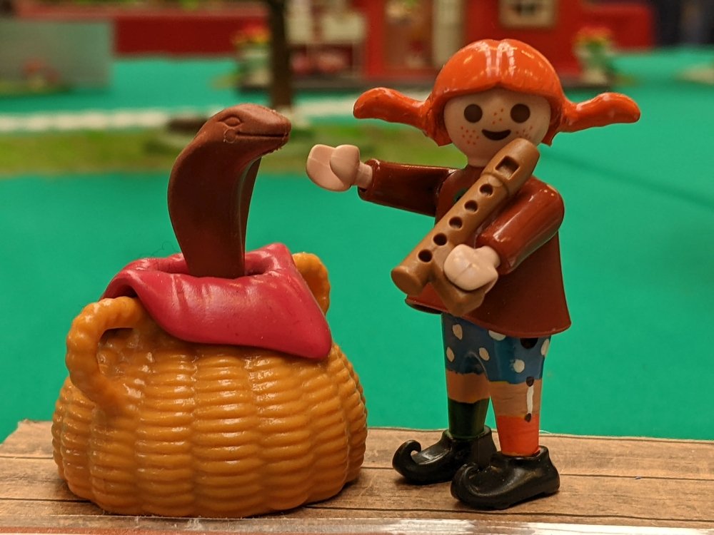 Dazu die Szene auf dem Rummelplatz, wie Pippi die Schlange beschwört.