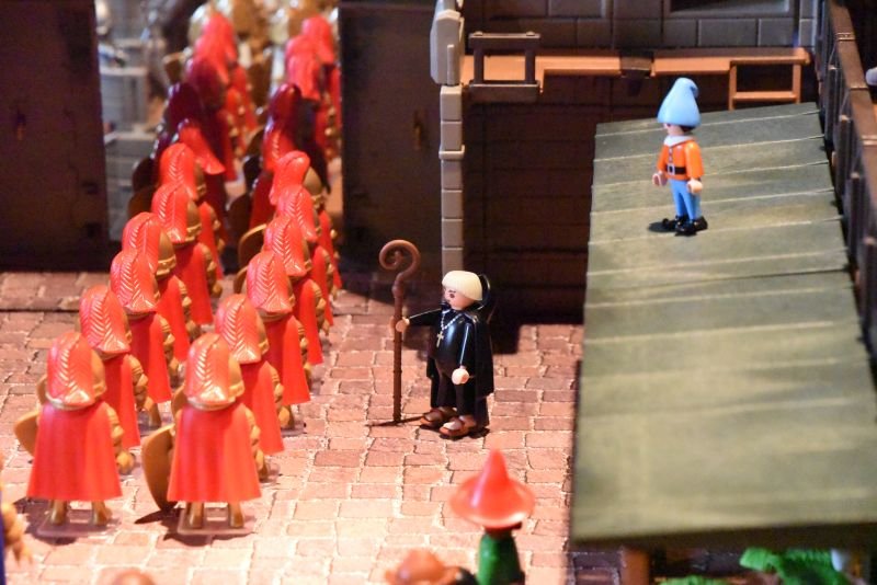 Aber das Highlight waren die vielen Ritter. Durch die tollen kräftigen Farben (viel Weiß, Rot, Gold) hat mich das ein bisschen an Herr der Ringe erinnert. Andere Gesichter und Ohren, und das hätte auch ein Elbenheer sein können.