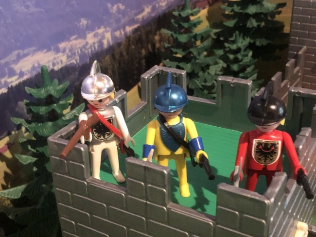 Habe selten so ein (grell-)farbenfrohes Mittelalter-Dio gesehen. Andererseits gab es von Schnek einige Teile, die ich gern von Playmobil auch haben würde, z.B. besonderen Helmschmuck.