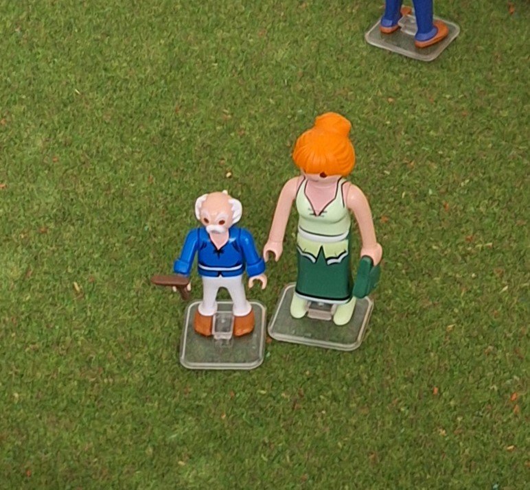 Im Hintergrund sieht man die Häuser von Asterix, Obelix und das Baumhaus von Troubadix.