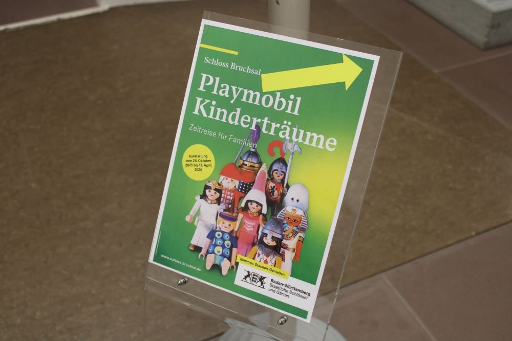 Im Schloss Bruchsal (Landkreis Karlsruhe) läuft aktuell einen Playmobil-Sonderausstellung mit dem Titel "Playmobil Kinderträume – Zeitreise für Familien", das seit dem 25. Oktober 2025 bis zum 12. April 2026 zu sehen ist.