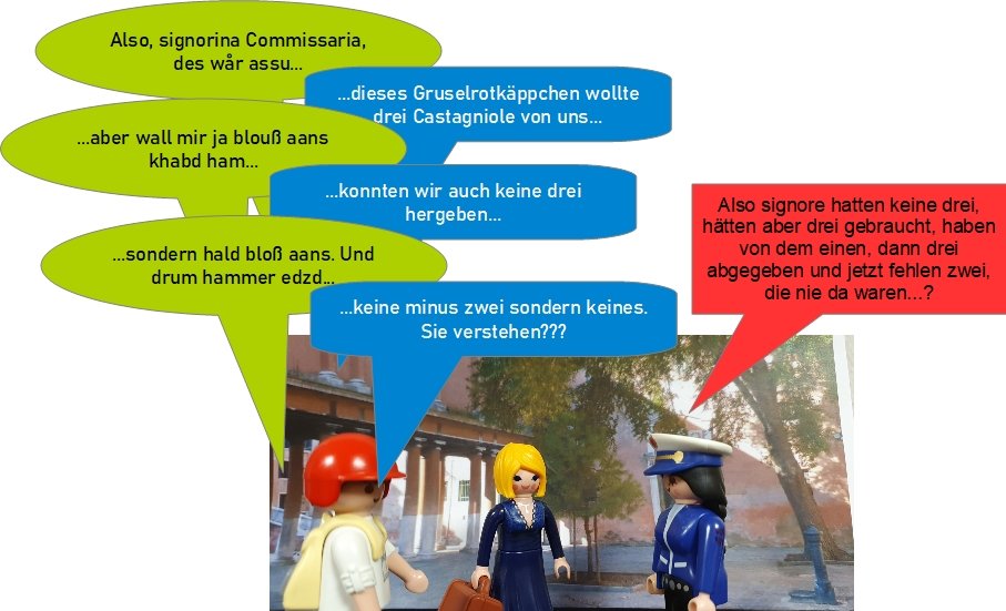 Sehr schön aufbereitet die Problematik und das Spezial-Italienisch verstehe ich besser als das Fränkisch (trotz der Übersetzungshilfen).