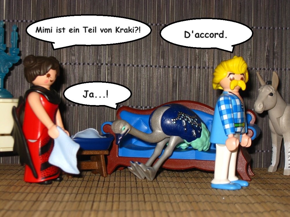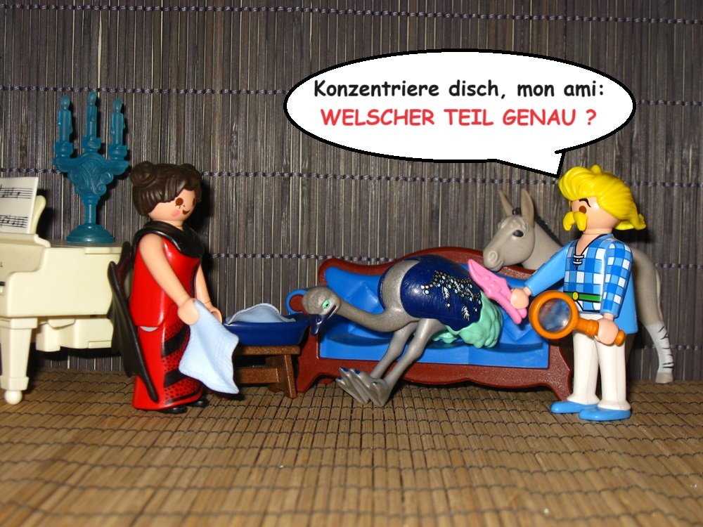 Diese kleinen Bilder im Hintergrund beim Großwildjäger! Violine beim Krokodil, Schach mit dem Gorilla und was bekommt der Löwe?? Sahnetorte oder Sandwich - ich konnte es nicht erkennen.