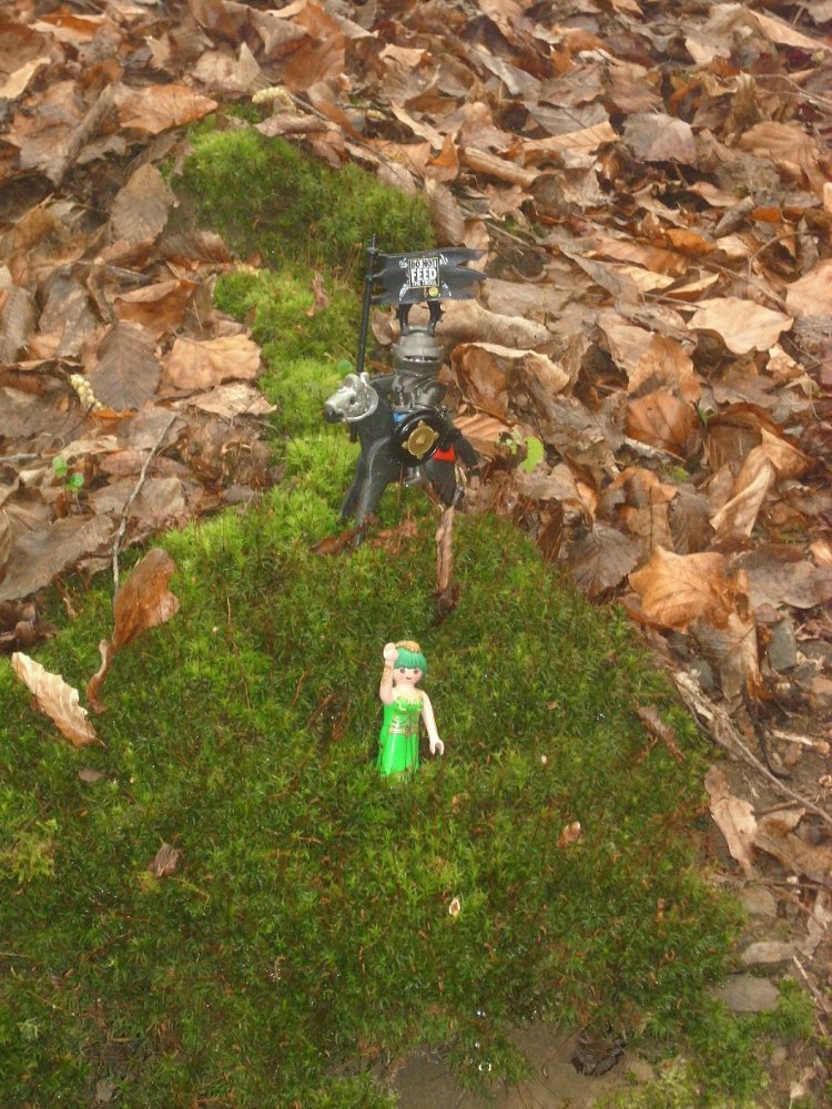 für eine Bildergeschichte hat es heute beim erneuten Besuch der deutlich feuchteren und matschigeren Stichelberg-Waldschlucht zwar nicht gereicht, aber immerhin zum Besuch meines schwarzen Ritters bei der grünen Waldfee meiner Tochter.