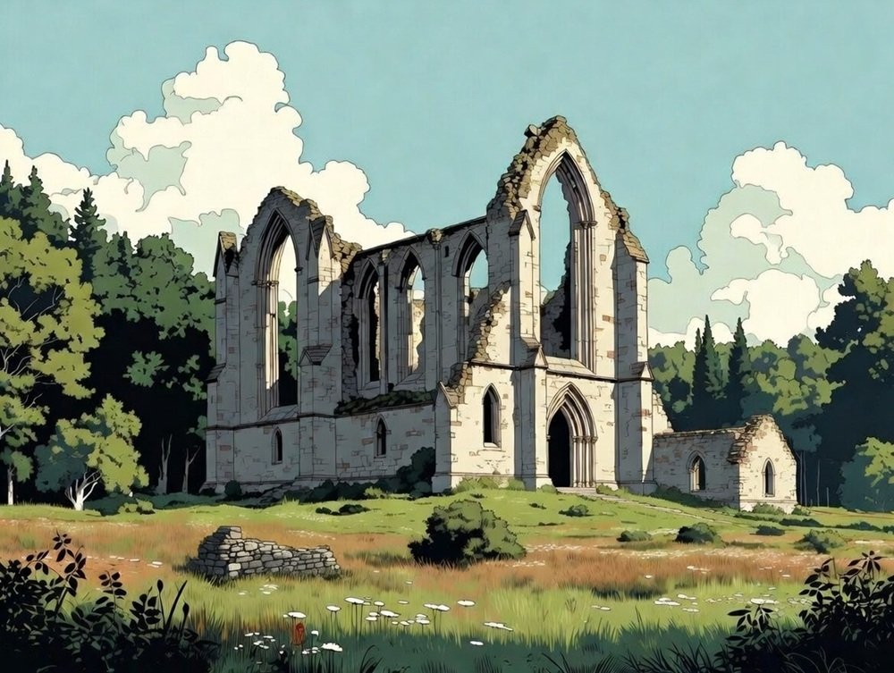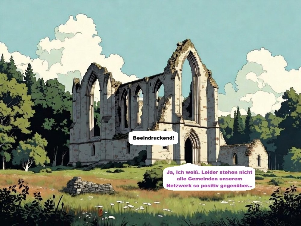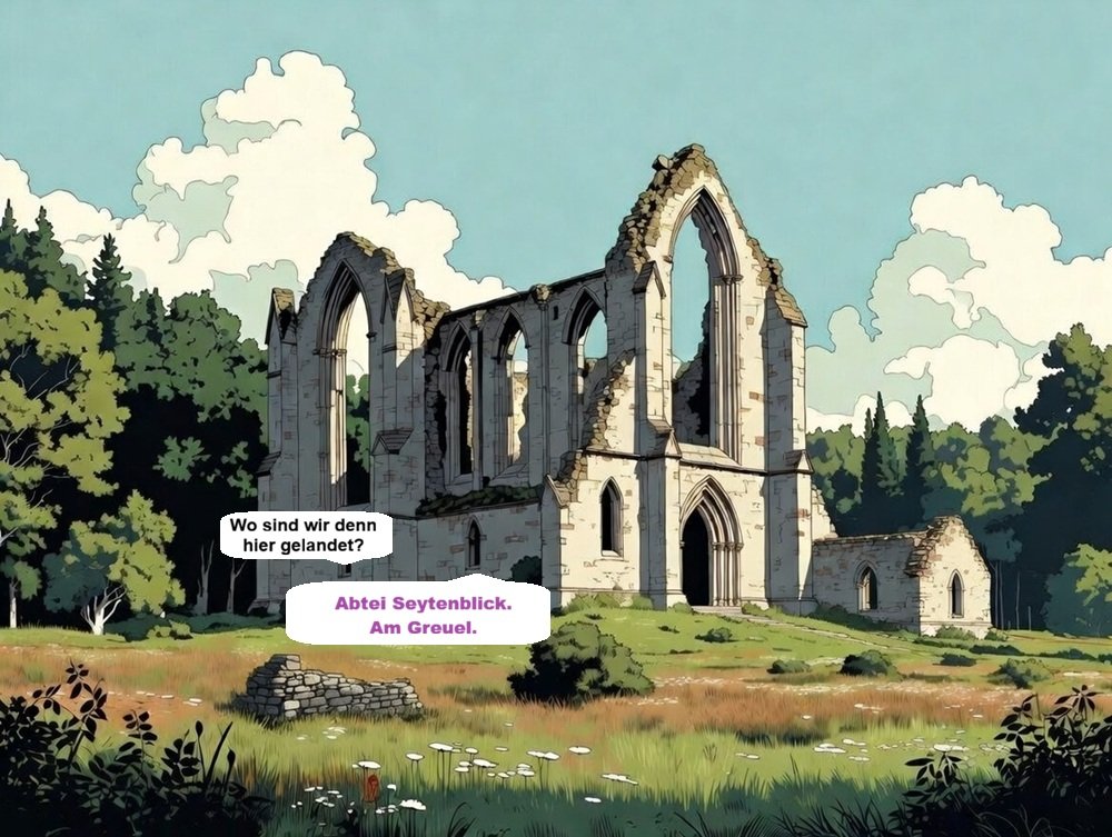 Der nächstgelegene Ausstieg ist die alte Klosterkirche der Abtei Seytenblick am Greuel.