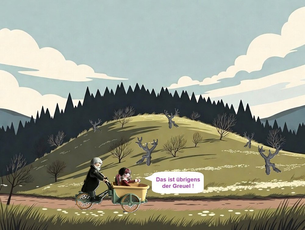 Sobald man den Greuel (nach lokaler Überlieferung ein keltischer Grabhügel, aber die alten Leut' sagen nur "der Galgenberg"...) heil umrundet hat, sind es nur noch knapp 15 Kilometer auf gepflegten Radwegen bis nach Sonntagsberg.