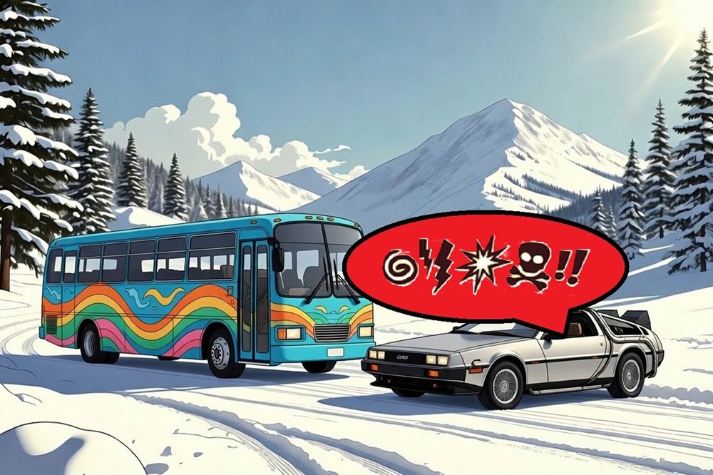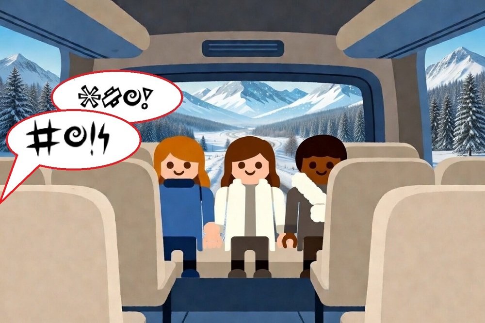 Der kunterbunte Ausflugsbus mit Mimi und ihren Freundinnen war in der verschneiten Berglandschaft wirklich nicht zu übersehen