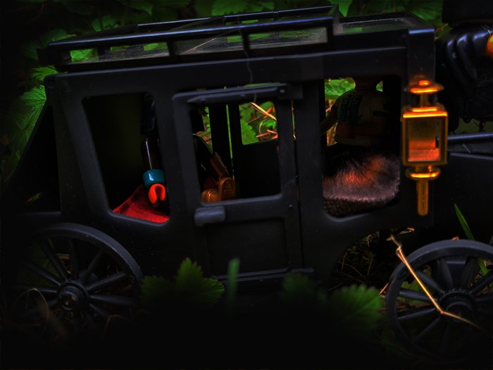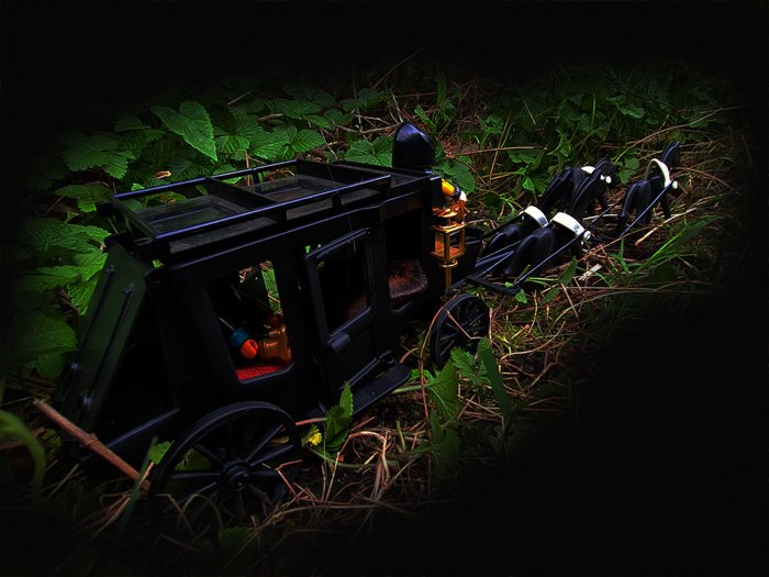 einer..... Kutsche. Wieso sitze ich in einer Kutsche?"