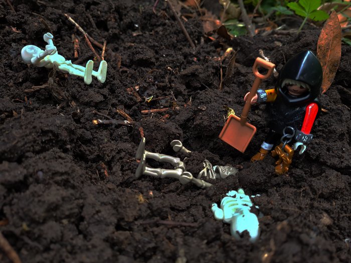 "Mhm!" Mit Schwung warf er auch das Skelett zur Seite. Sofort grub Igor weiter.