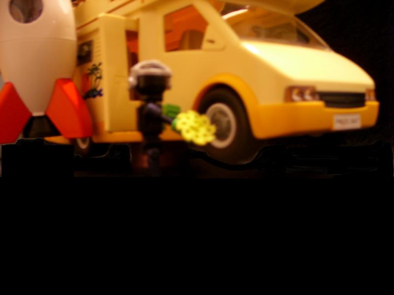 der alles entscheidende Reifen - Treffer von Darklord !!! Sofort schickte der Prof. eines seiner phantastischen Geschöpfe zum Löschen, den Universalrobot "Erni 1".