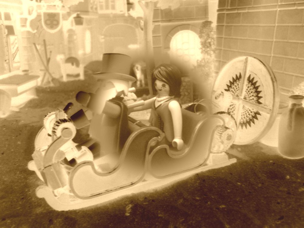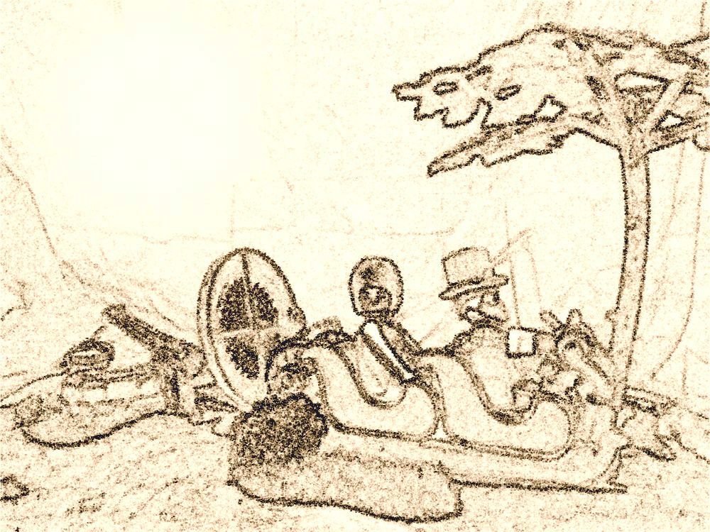 Sofort steigen sie in die Zeitkutsche und Dr. Eusebius startet sie.