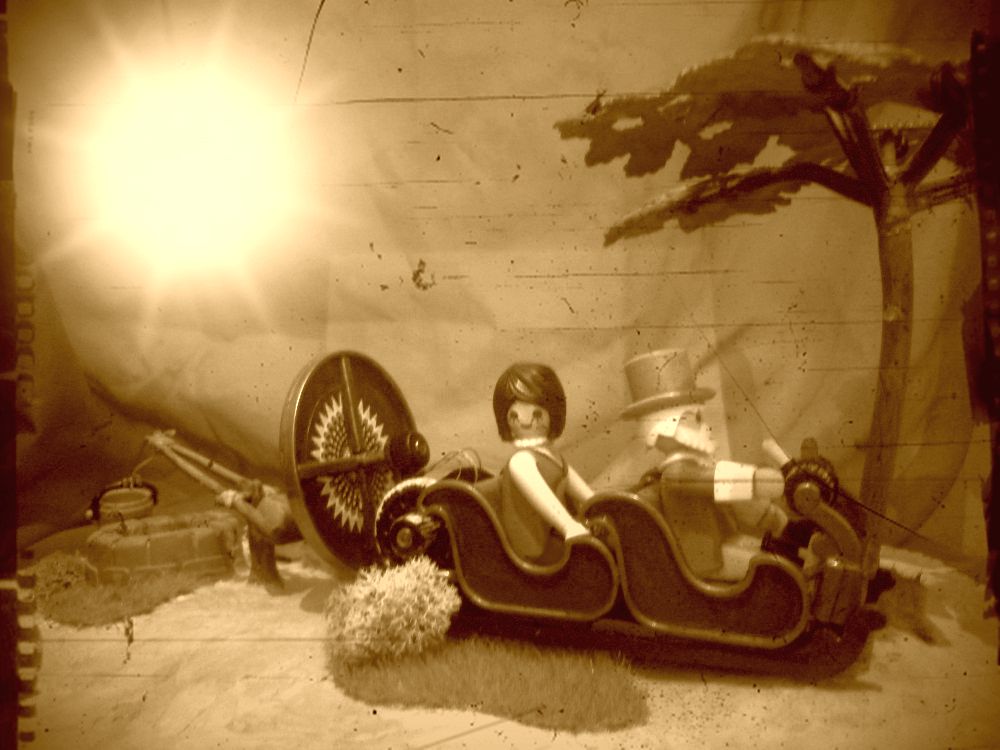 Ufffff, vom kalten Rumänien gibt es unseren Helden gleich eine ordentliche Watschen, muß es doch hier mindestens 40 Grad im Schatten haben, wenn es wo einen Schatten in dieser Wuste gibt.