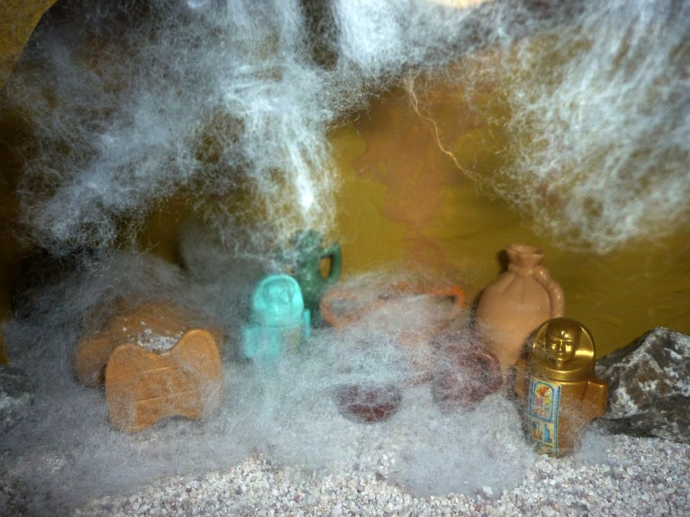 Aber zuerst hieß es, das grausige, klebrige Gewebe zu entfernen um näher an die Grabstätte zu kommen.