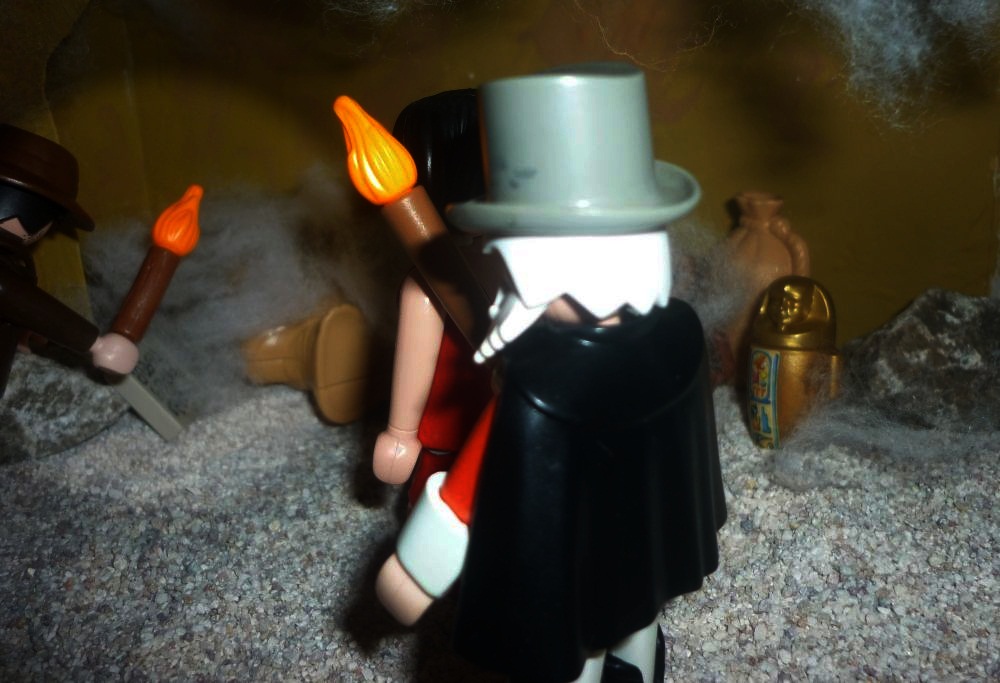 Der Beigesetzte war der Perückenmacher des Pharao, ein gewisser PALAVRIS, dessen Klappe man scheinbar extra erschlagen mußte. Daraufhin belegte die Königin HATSCHEPSUT den Armen mit einem Fluch, der ihn zum ewigen Schweigen zwang.