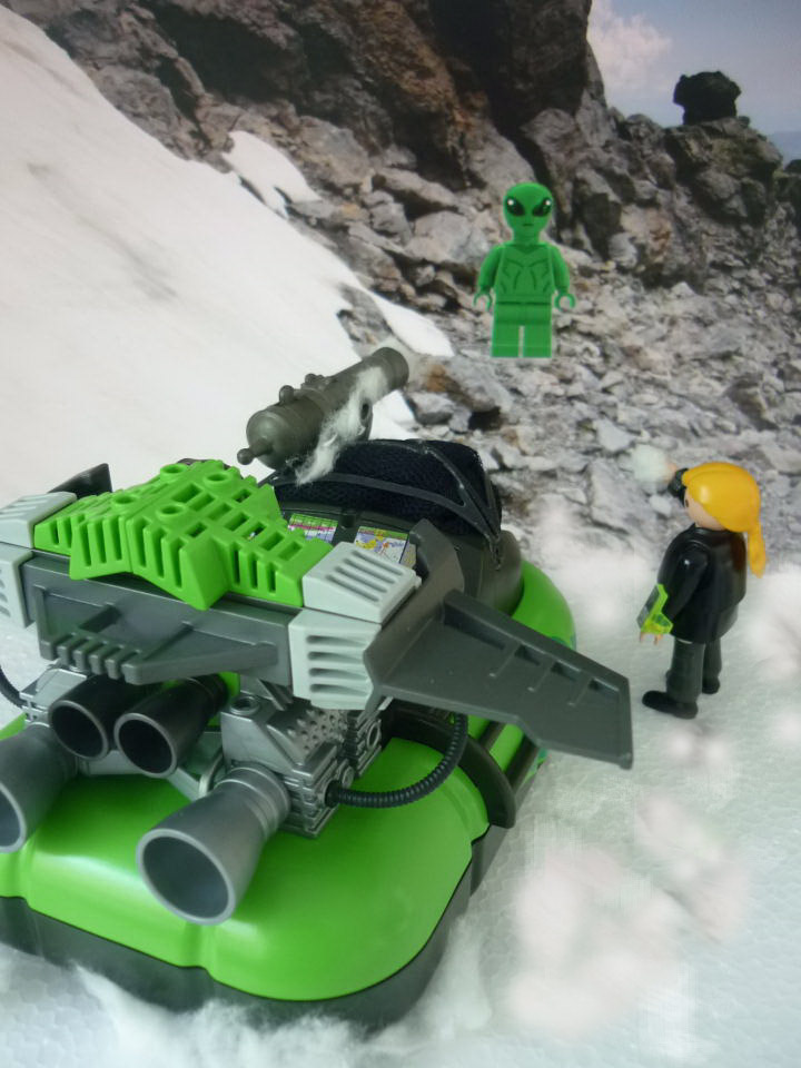 "Raus aus dem Qualm!" Knusper zog den Raptor nach oben, doch da gerieten sie gleich in den Beschuß eines Marsianers.