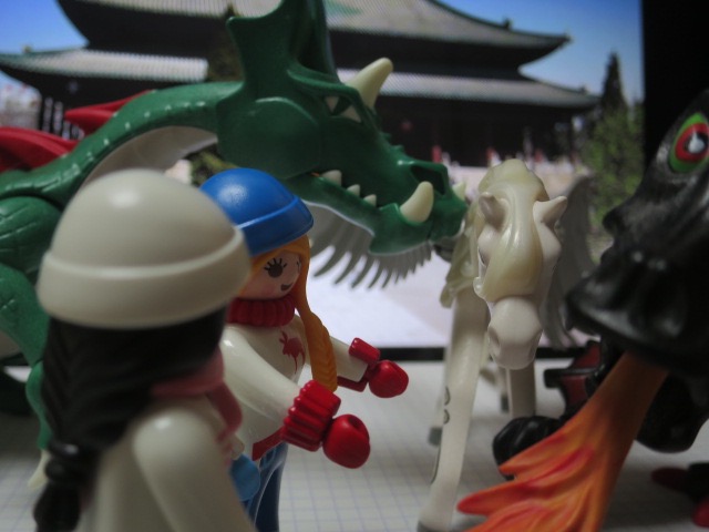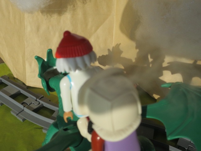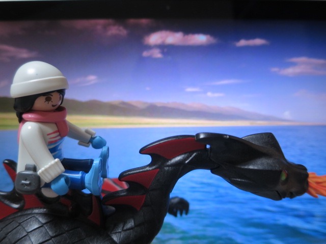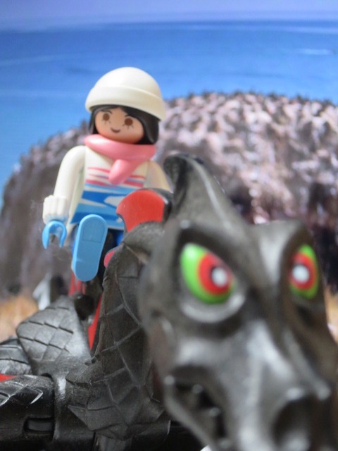 Die ist total glücklich, dass sie den Drachen mal reiten darf. Dann geht es endlich wieder los.
