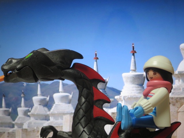 Da ein sehr kalter Wind über die Steppe weht, landen sie für eine Pause in Karakorum und zwar an der Silberbaum Fontäne.