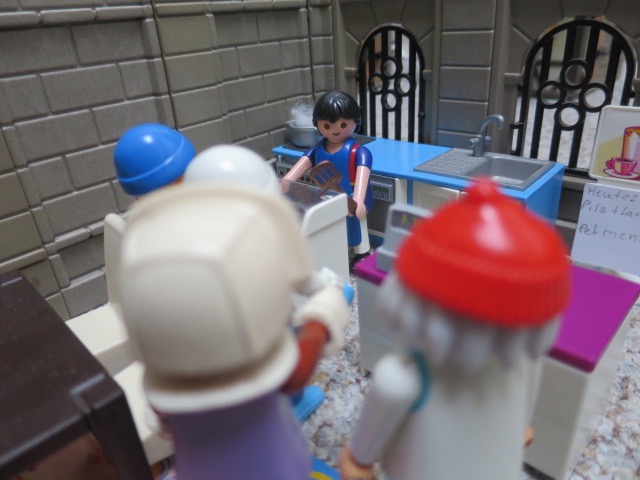 Und schon legt der Professor wieder Los: "Pelmeni, sind so eine Art Russische Ravioli. Mit Rinder, Schweine oder Lammhack gefüllte Teiglinge..." "Professor" rufen alle anderen wie aus der Pistole geschossen und blocken so eine weitere Rede ab. Die Vier betreten den Imbiss, bestellen und lassen es sich bei Pelmeni, Zwiebelbrot und Wodka für den Professor gut gehen.