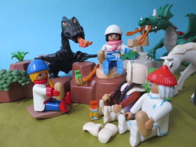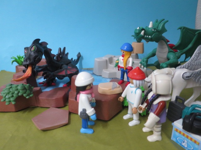 Die anderen Reiseteilnehmer begrüssen den Erddrachen auch und nutzten den Stopp für einen Snack. Dann macht sich Team wieder auf den Weg.