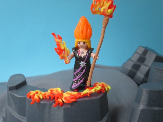 Plötzlich wie aus dem Nichts erscheint Flammbada auf dem Rand des Vulkans und schleudert Feuerbälle nach der Reisegruppe.