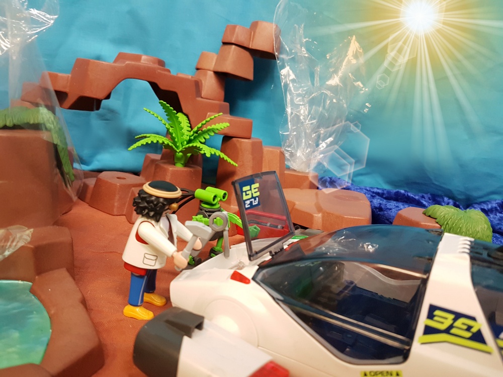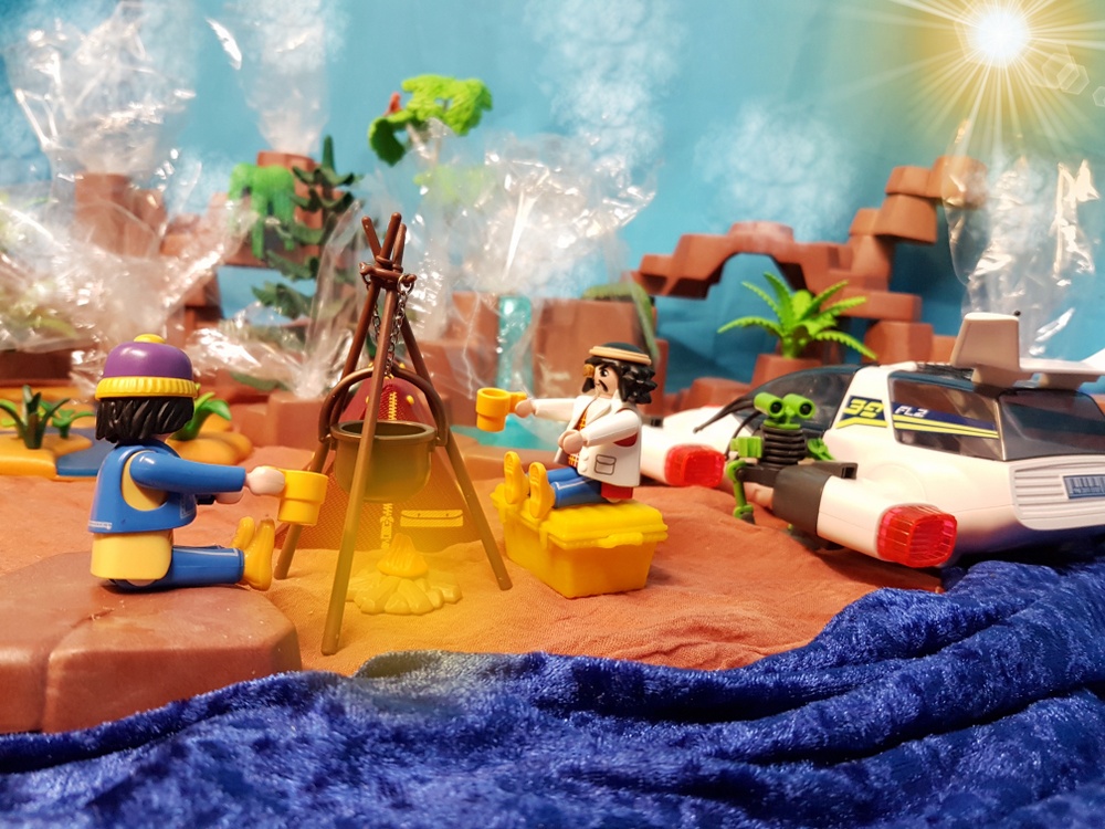 ... während Conrad zusammen mit Helferlein beginnt, den Düsenschweber wieder flottzumachen.