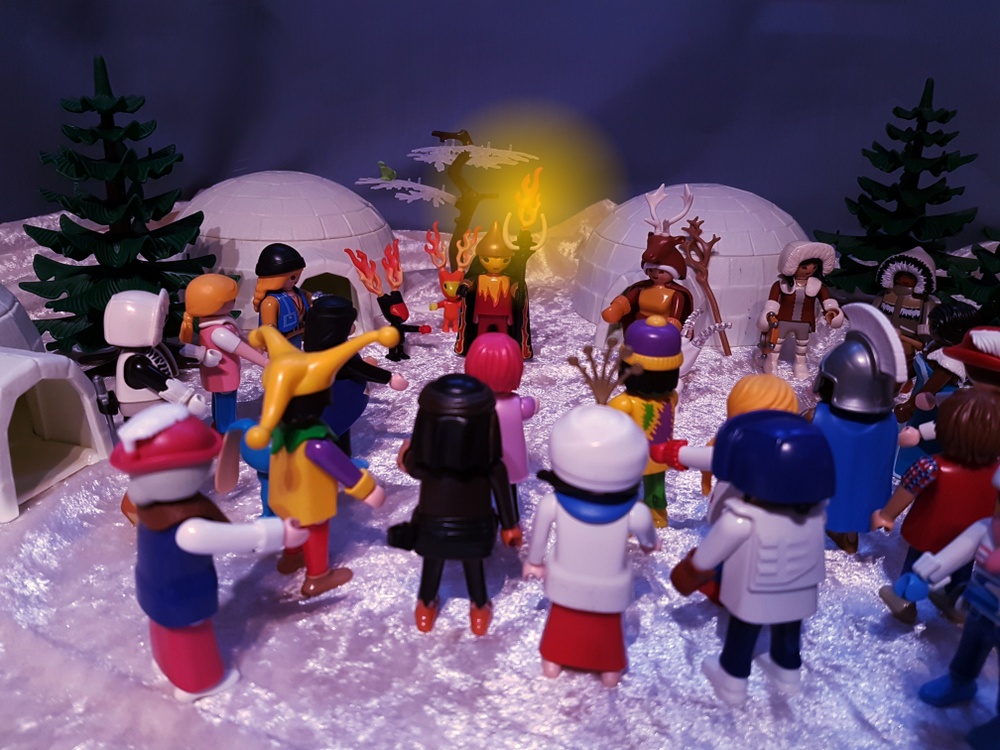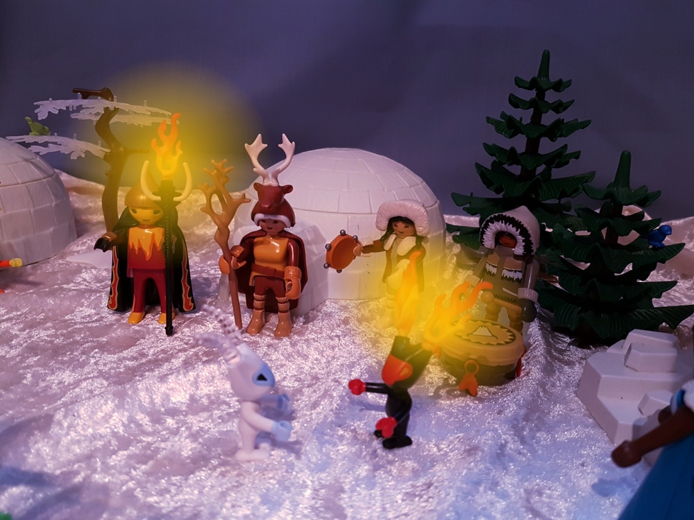 Fräulein Qvanilla, die Schamanin des Stammes und Hüterin der Eiskugel, hat uns schon erwartet und fordert uns auf, unser Kugelbruchstück zu den anderen auf den Haufen zu legen.