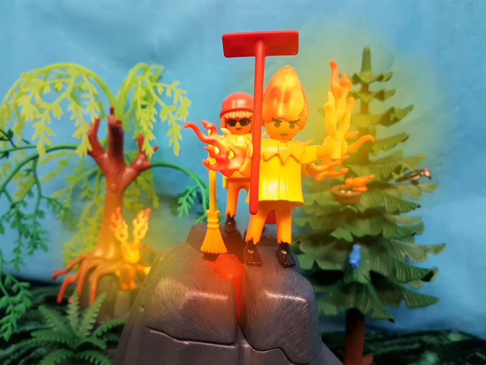 Und richtig, mitten im Eis lodern plötzlich drei Flammen auf! Alle drehen sich erschrocken um und starren auf Herrn Feurich und seine beiden Begleiter. Nur Fräulein Qvanilla geht entspannt auf die Fuegos zu und begrüßt sie freundlich. Dann wendet Fräulein Qvanilla sich beschwichtigend an die unruhig murrenden Rallyeteams: