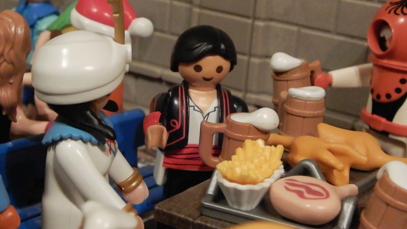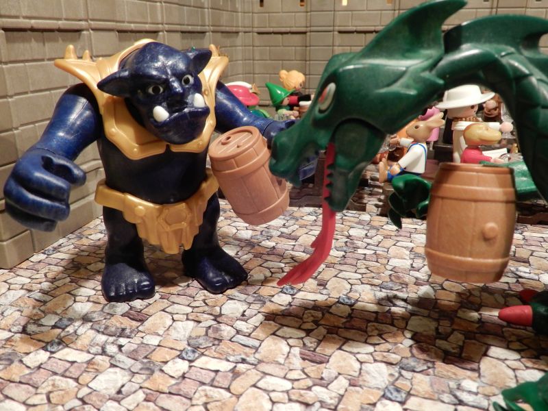 „Prost!“ ruft Klinky, während Arkan die beiden verwirrt ansieht.