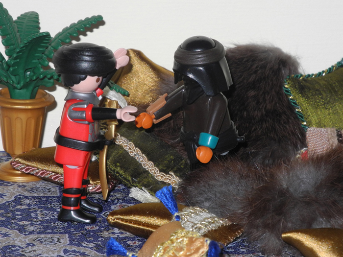 "Na Dornröschen, hat doch gar nicht weh getan! Los raus jetzt aus dem Diwan, sonst......"