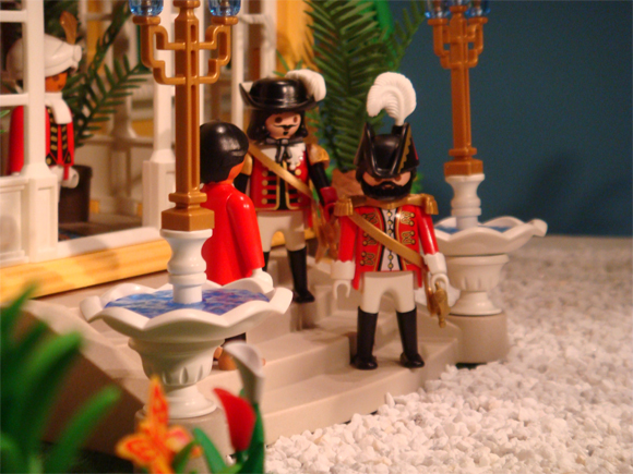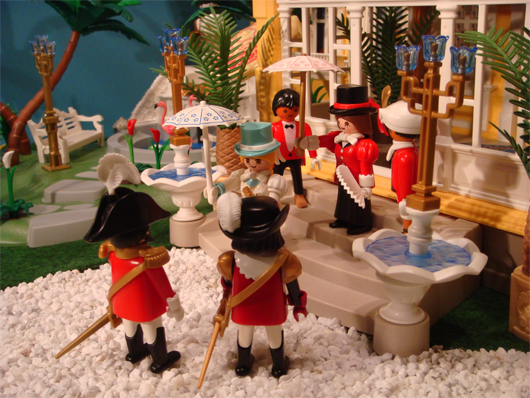 Constanze: "Komm Katharina, wir nehmen dort am Springbrunnen Platz!"