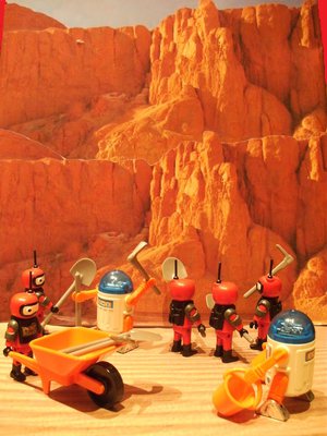 Und so kamen die Roboter wieder im Einsatz... Und obwohl der Professor es für eine Schnapsidee hielt hier, in the middle of nowhere, zu graben, schien da doch was in de Felzen auf zu tauchen...Selbst der Professor war erstaunt!